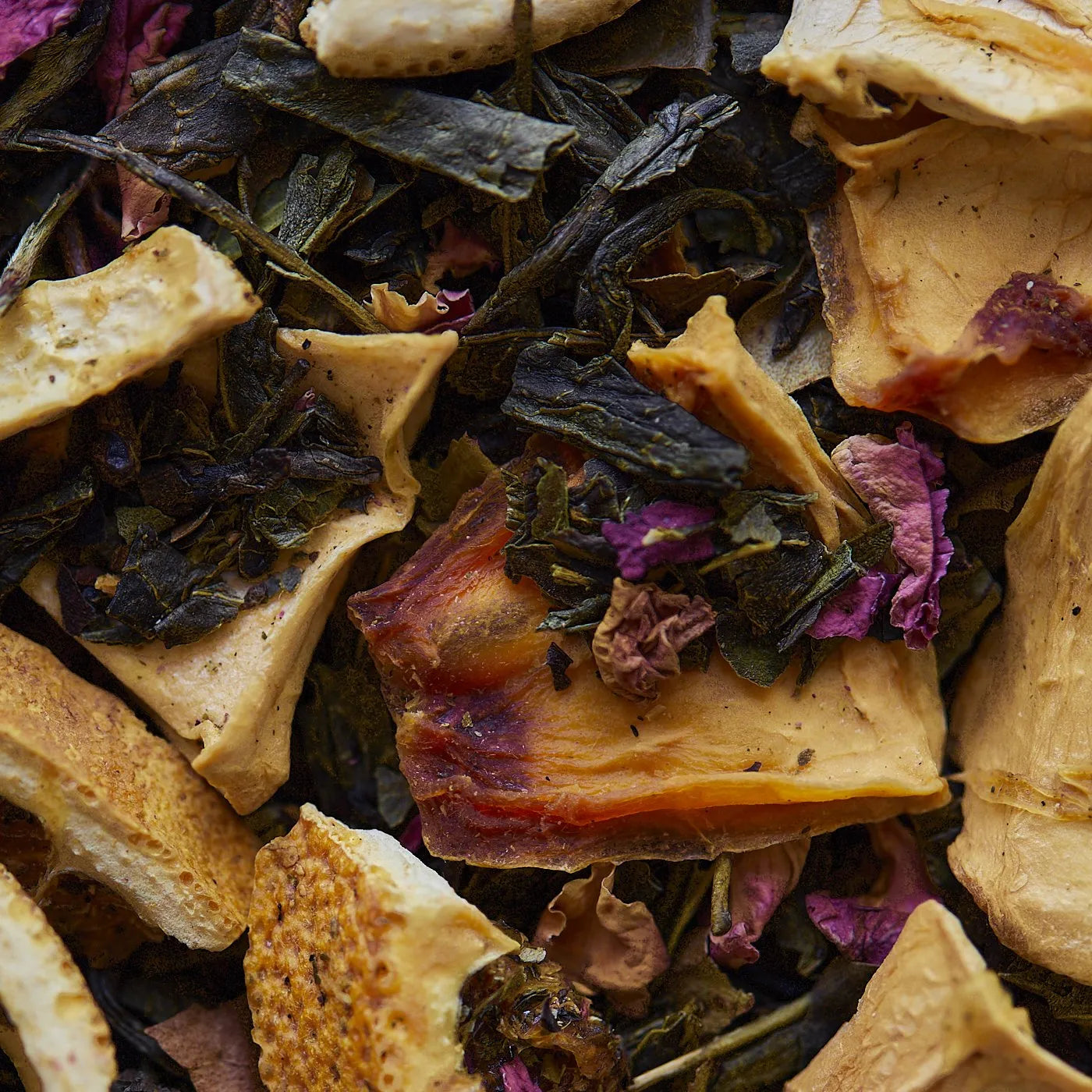 Favoloso! tè verde e bianco arricchito con fettine di papaya, scorze d'arancia e petali di rosa. Con note dolci, fresche e fruttate.